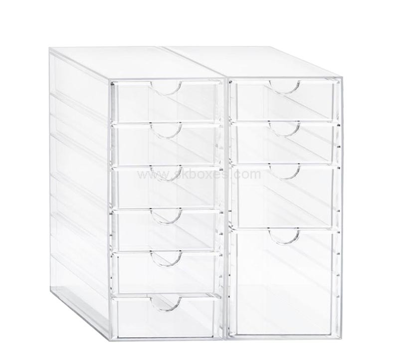 Custom acrylic cosmetics organizer with 10 drawers, designed to neatly store and display makeup, brushes, and beauty tools. Durable, stylish, and practical for home or salon use. Door-to-door delivery with tax paid, making shopping simple and stress-free.