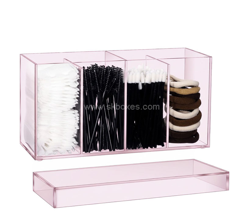 Custom translucent pink acrylic dressing table holder featuring four compartments and a matching lid for clean, organized storage. Ideal for cosmetics and daily essentials. Your shipping cost includes all taxes and fees, ensuring smooth, worry-free delivery to the US, Europe, and select Asian countries.