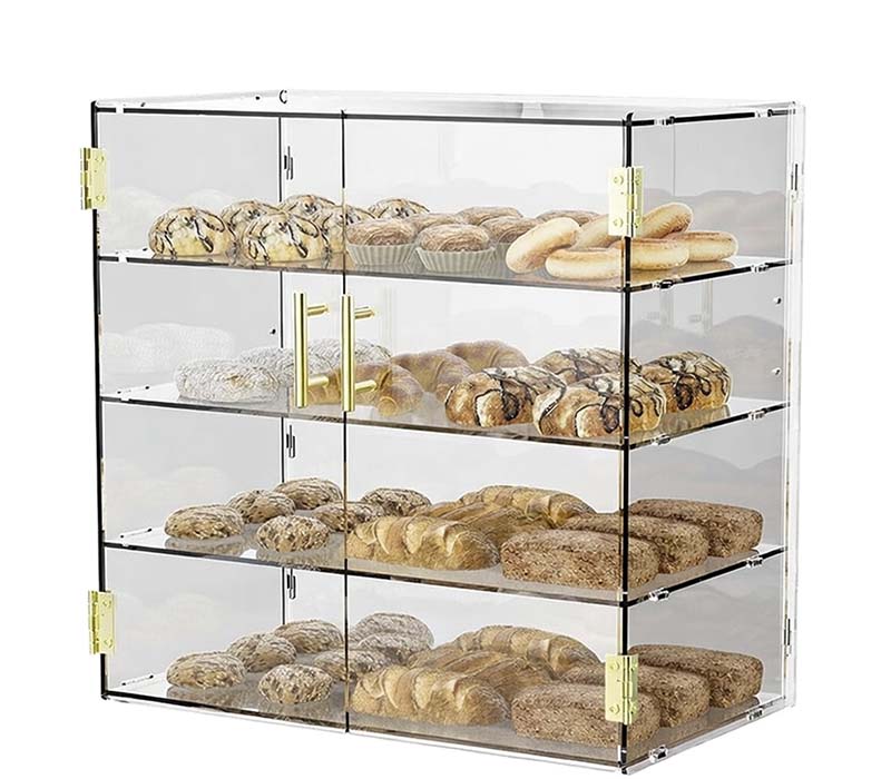 Elevate your bakery display with our custom 4-tier acrylic bread showcase. Designed for maximum visibility and freshness, it features crystal-clear acrylic with adjustable tiers. Fully customizable in color, shape, and size. Ideal for bread, pastries, and baked goods. Wholesale only.