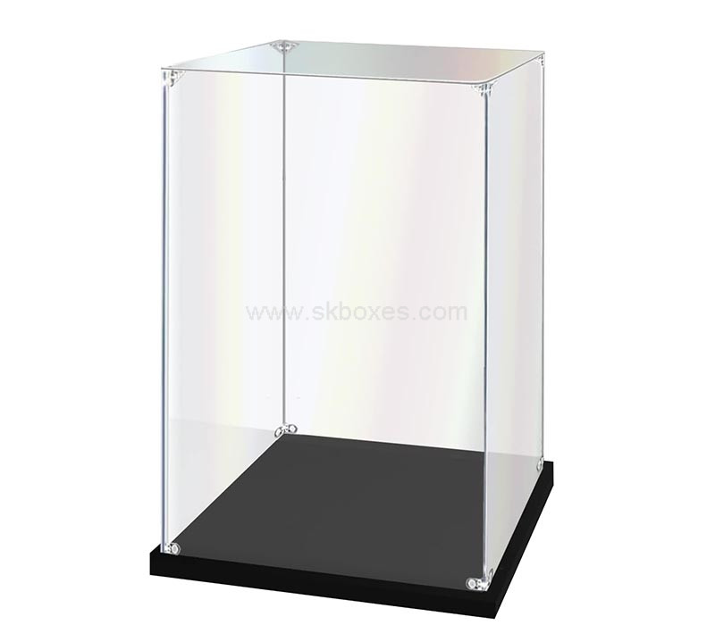 This custom acrylic anti-dust showcase with a sleek black base offers premium protection and clear visibility for collectibles, figures, or merchandise. Designed for durability and elegance, it keeps items dust-free. Available exclusively for wholesale. Ideal for retail and exhibitions.
