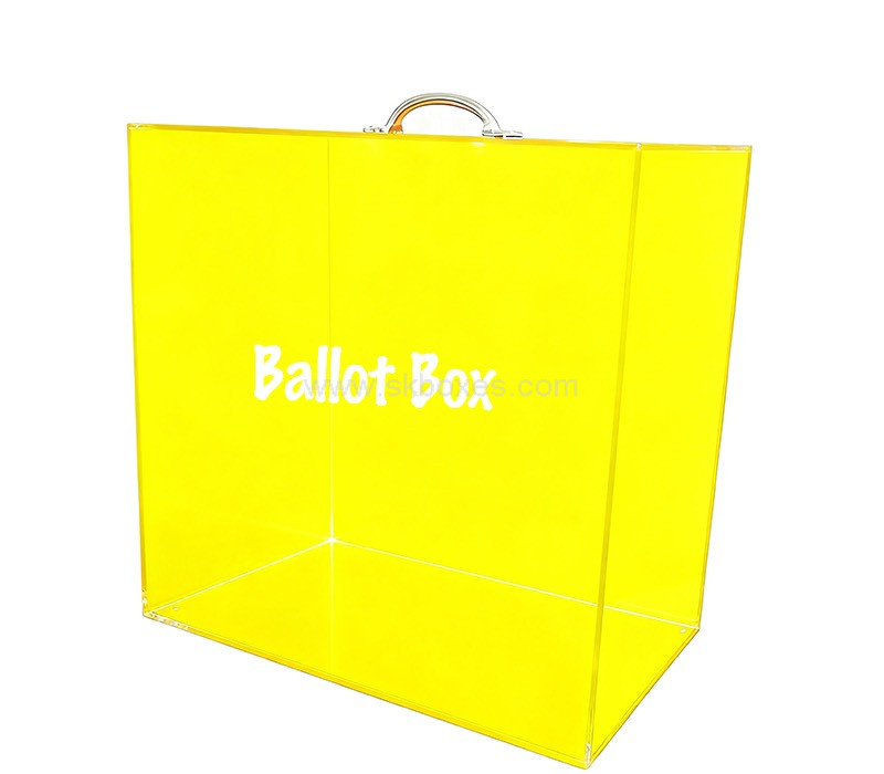 Custom acrylic ballot box with a sturdy metal handle — ideal for voting, contests, and secure collections. Enjoy a seamless order experience with tax-free, worry-free delivery straight to your door across the US, Europe, and select Asian regions.