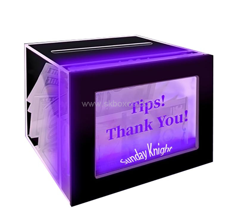 Brighten your earnings with this sleek acrylic LED tips jar, perfect for bars and restaurants. Eye-catching glow attracts more tips. Custom designs available. Bulk pricing for businesses. Order yours today!