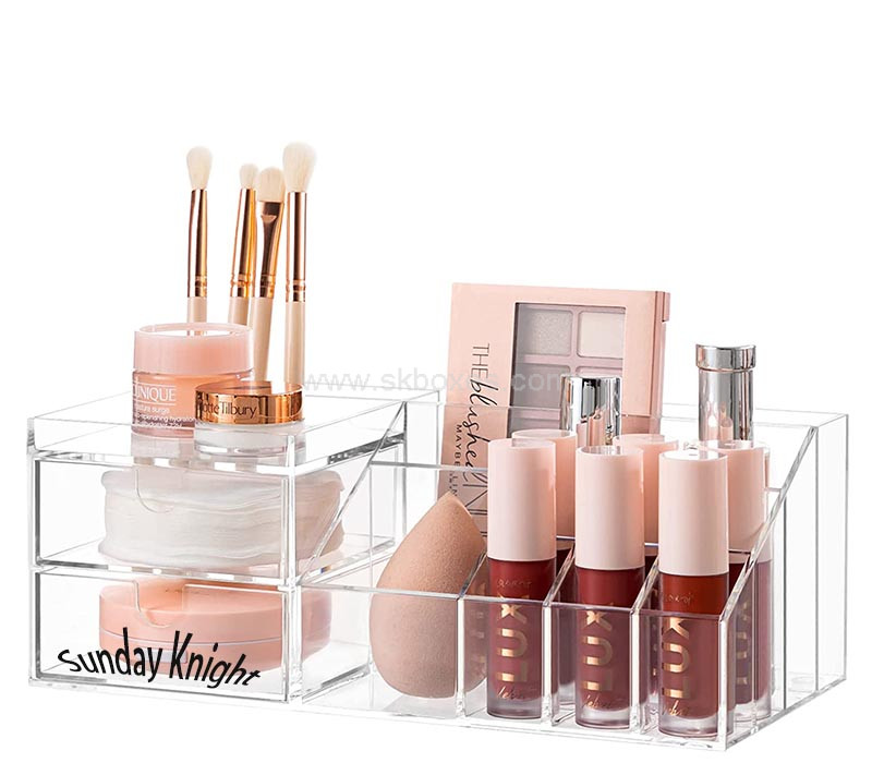 Tax-free to your door. This custom acrylic beauty makeup organizer offers a sleek and functional solution for storing cosmetics and tools. Crafted from clear, durable acrylic. Wholesale only—ideal for salons, beauty retailers, and promotional packaging.