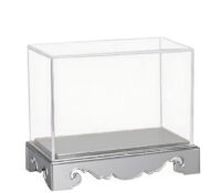 Custom acrylic collectibles display box with an elegant silver base, ideal for showcasing valuable items with clarity and style. Wholesale only, includes all-in door delivery with no extra fees—perfect for retail, exhibitions, or personal collections.