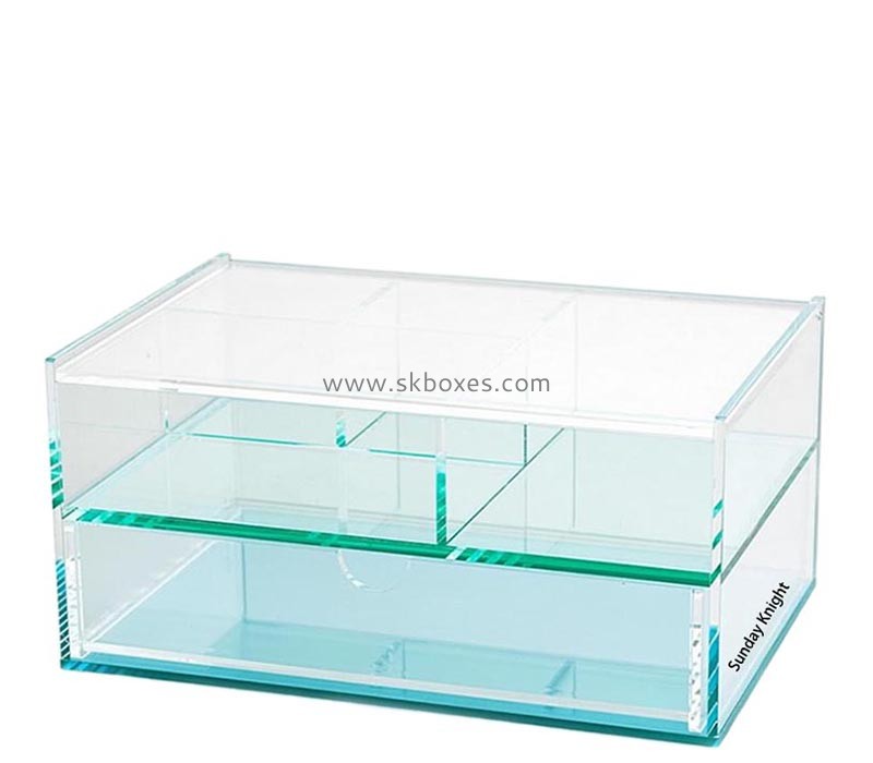 Custom glass green acrylic countertop drawer display boxes offer a vibrant and functional storage solution. These display boxes, with their glass green acrylic construction, provide a striking appearance that enhances the visual appeal of any countertop.