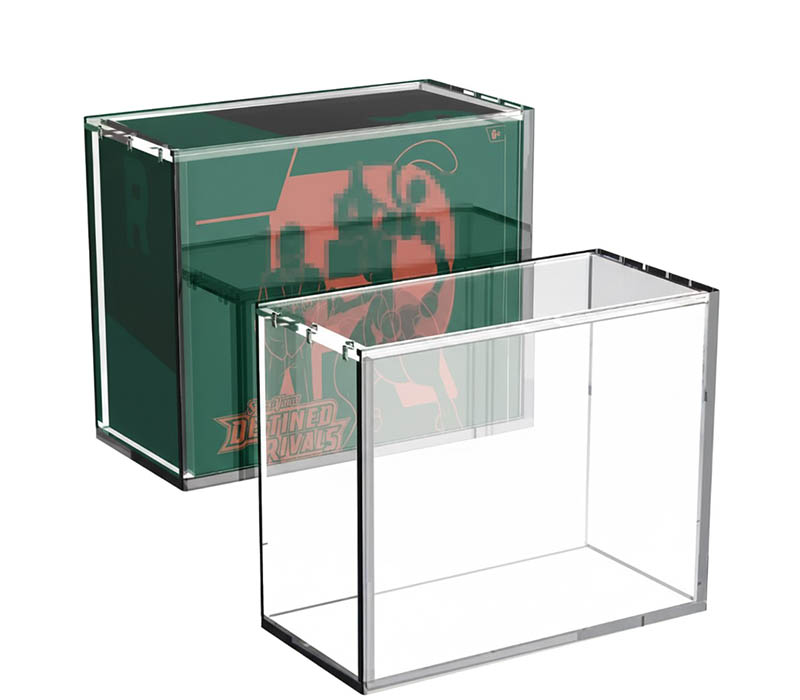 Custom acrylic ETB (Elite Trainer Box) display storage box designed to organize, protect, and showcase collectible card boxes. Made from high-quality, crystal-clear acrylic, it is dustproof, durable, and scratch-resistant, offering full visibility of your collection. Available in custom sizes, with optional logo engraving, ideal for collectors, retailers, and display purposes.