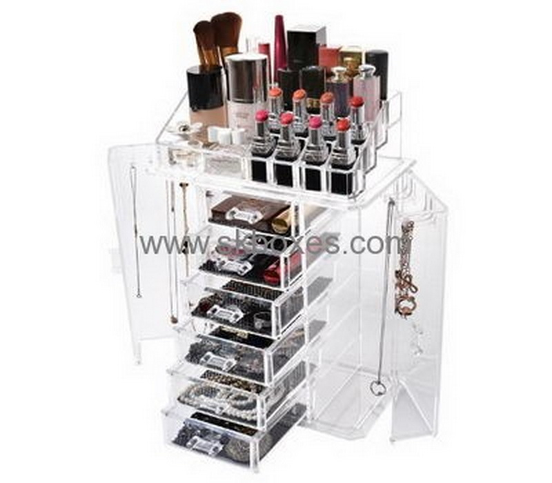 We are a professional acrylic box manufacturer custom design high quality acrylic large plexiglass display case jewelry and makeup storage box with reasonable price and best service, welcome to inquire!