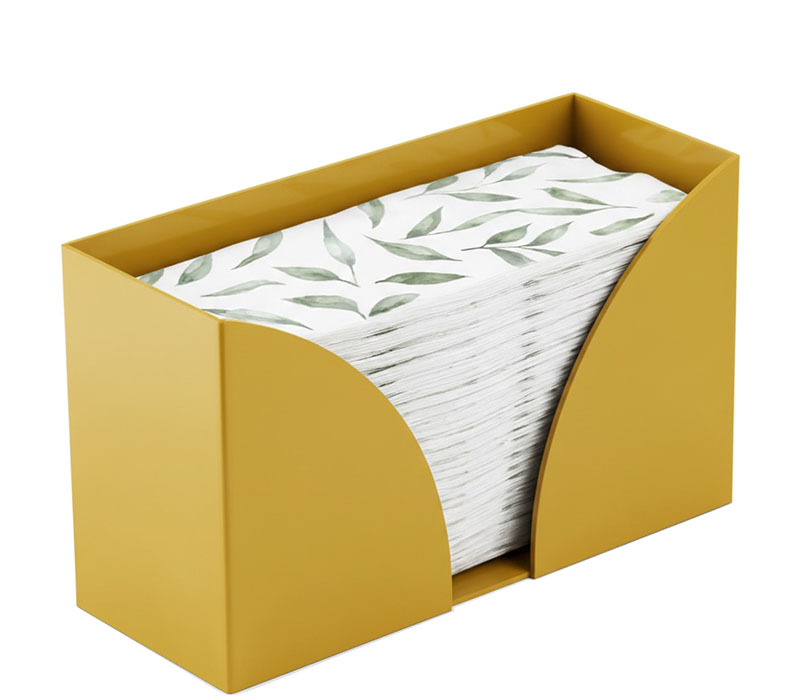 Custom yellow acrylic paper towel holder adds a vibrant, modern touch to kitchens, cafés, restaurants, and commercial spaces. Made from durable, high-quality acrylic with smooth polished edges, it securely holds standard paper towel rolls for easy access and replacement. Lightweight yet sturdy, it is customizable in size, color, and logo printing.