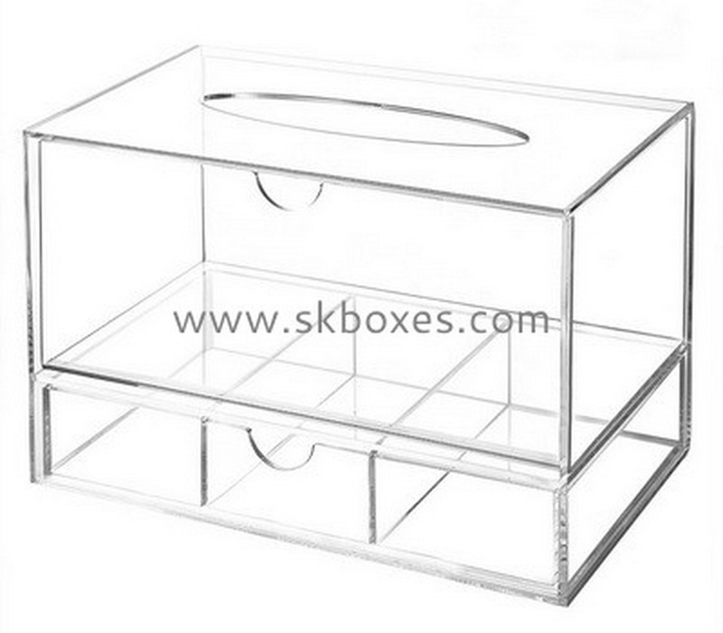 Plexiglass box manufacturer focus on custom acrylic plexiglass facial tissue box with drawer, please feel free contact us!
