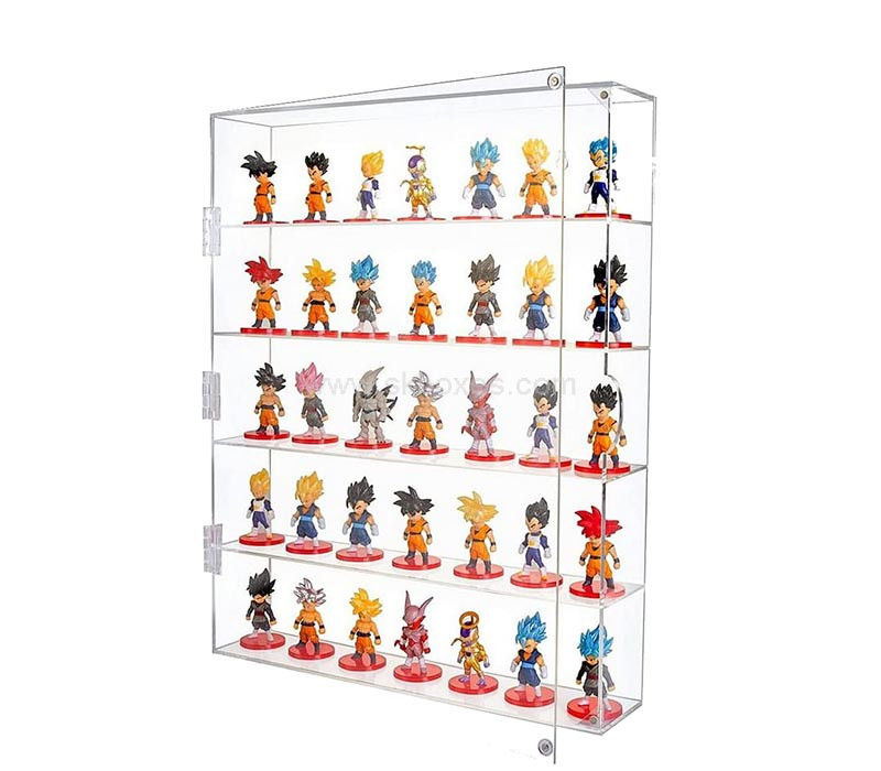 Custom acrylic wall-mounted display box with 5 tiers, perfect for organizing and showcasing collectibles. Clear, sturdy design enhances visibility. Wholesale only. Delivered directly to you with all duties covered. Ideal for collectors, retailers, or decorative wall displays.