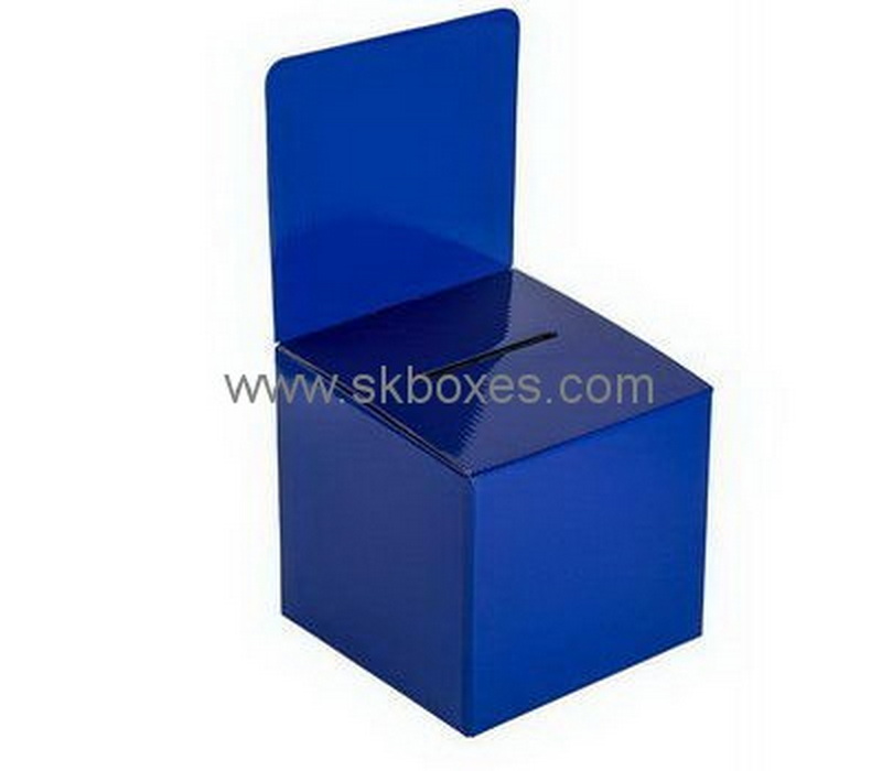Acrylic box manufacturer offer high quality custom blue acrylic charity box according to your requirements, welcome to inquire!