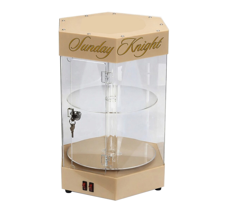 Elevate your retail space with our custom hexagon acrylic rotating LED display cabinet. Fully customizable in color, shape, and lighting. Perfect for showcasing products with elegance and motion. Wholesale only.
