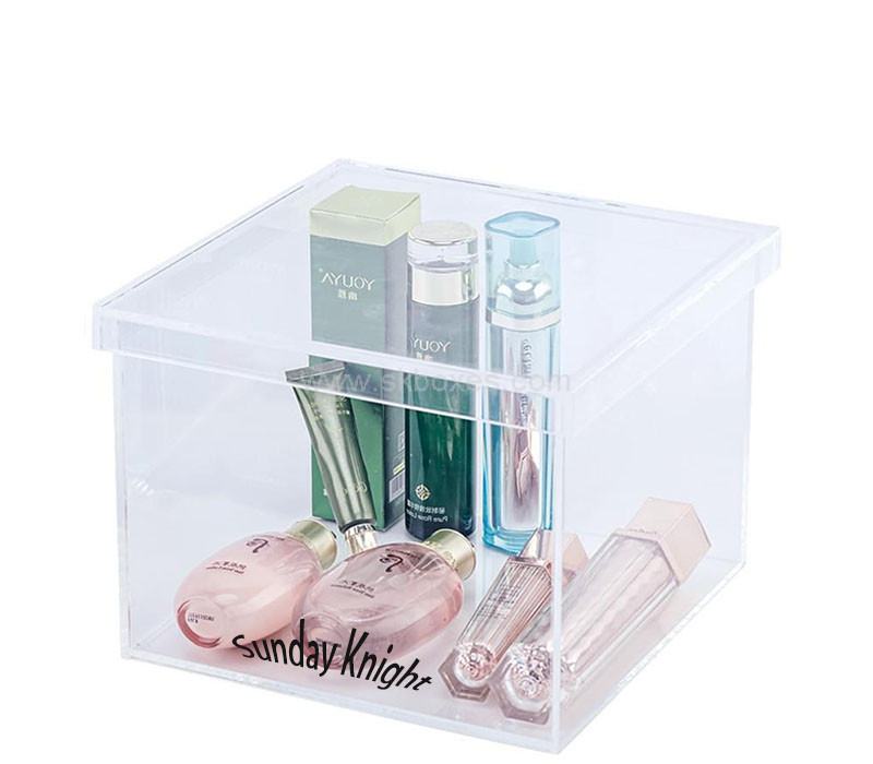Wholesale custom acrylic skincare storage box with lid, perfect for organizing cosmetics and beauty essentials. Durable, transparent design with sleek finish, ideal for professional or personal use. Customizable sizes and features available for ultimate convenience and stylish storage.